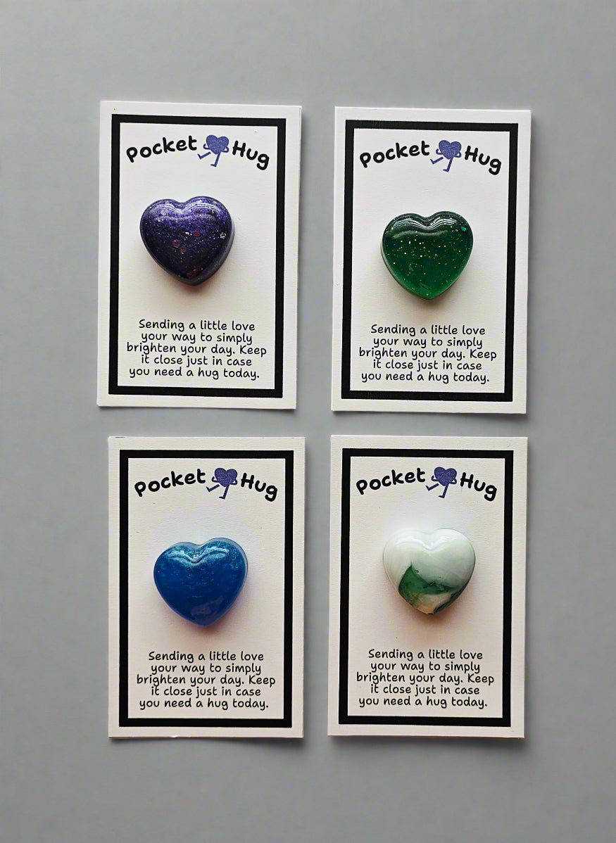 Why send a text when you can give something tangible? These adorable little pocket hugs are made of resin and come in any combination of colors you would like. They are like sending a piece of your heart to family and friends, letting them know you're thinking of them even when you're miles apart. It's like a warm squeeze that fits right in their pocket.